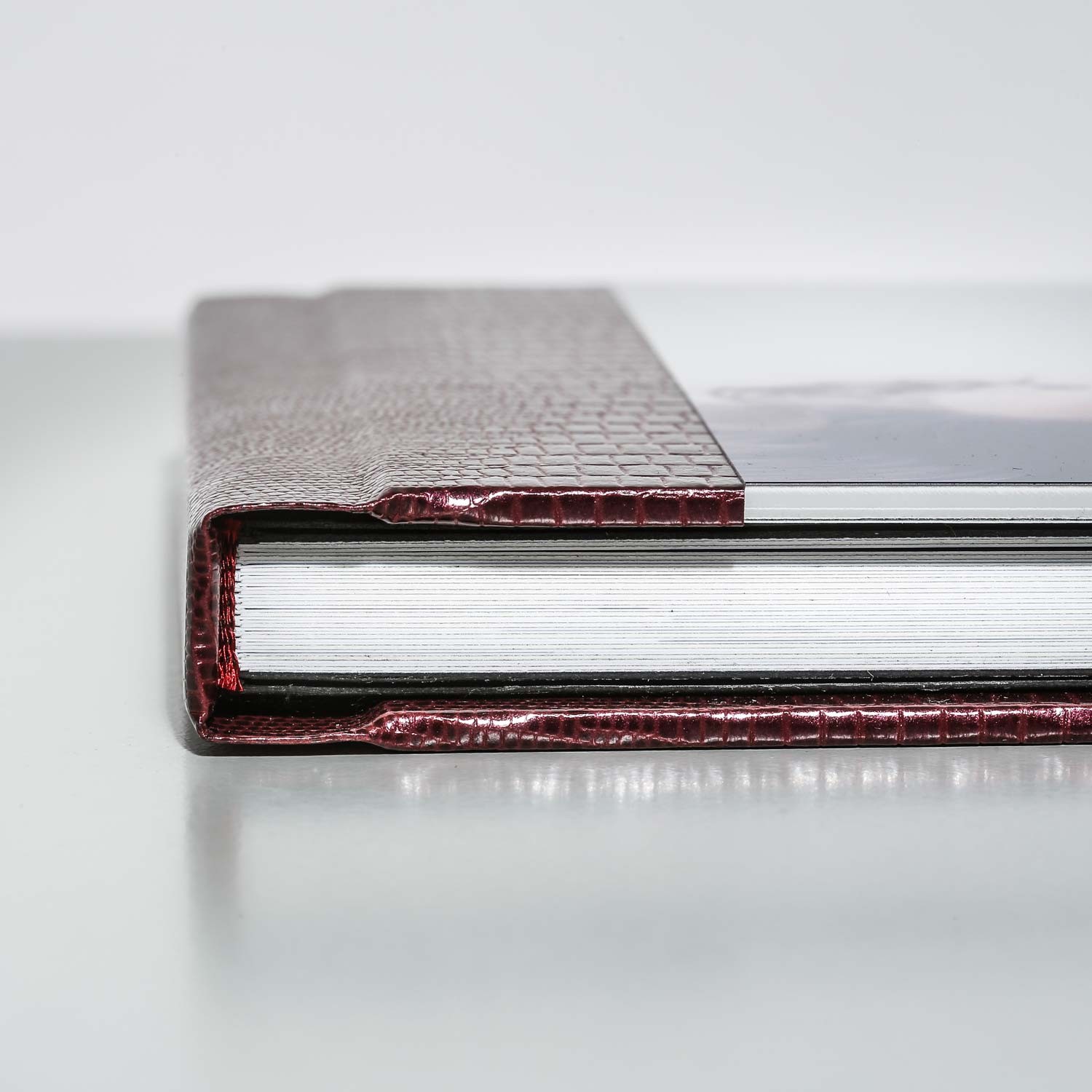 Het getoonde album met reptielhuid cover in de kleur bordeaux bevat 11 dubbele pagina’s op 300 grams drager.