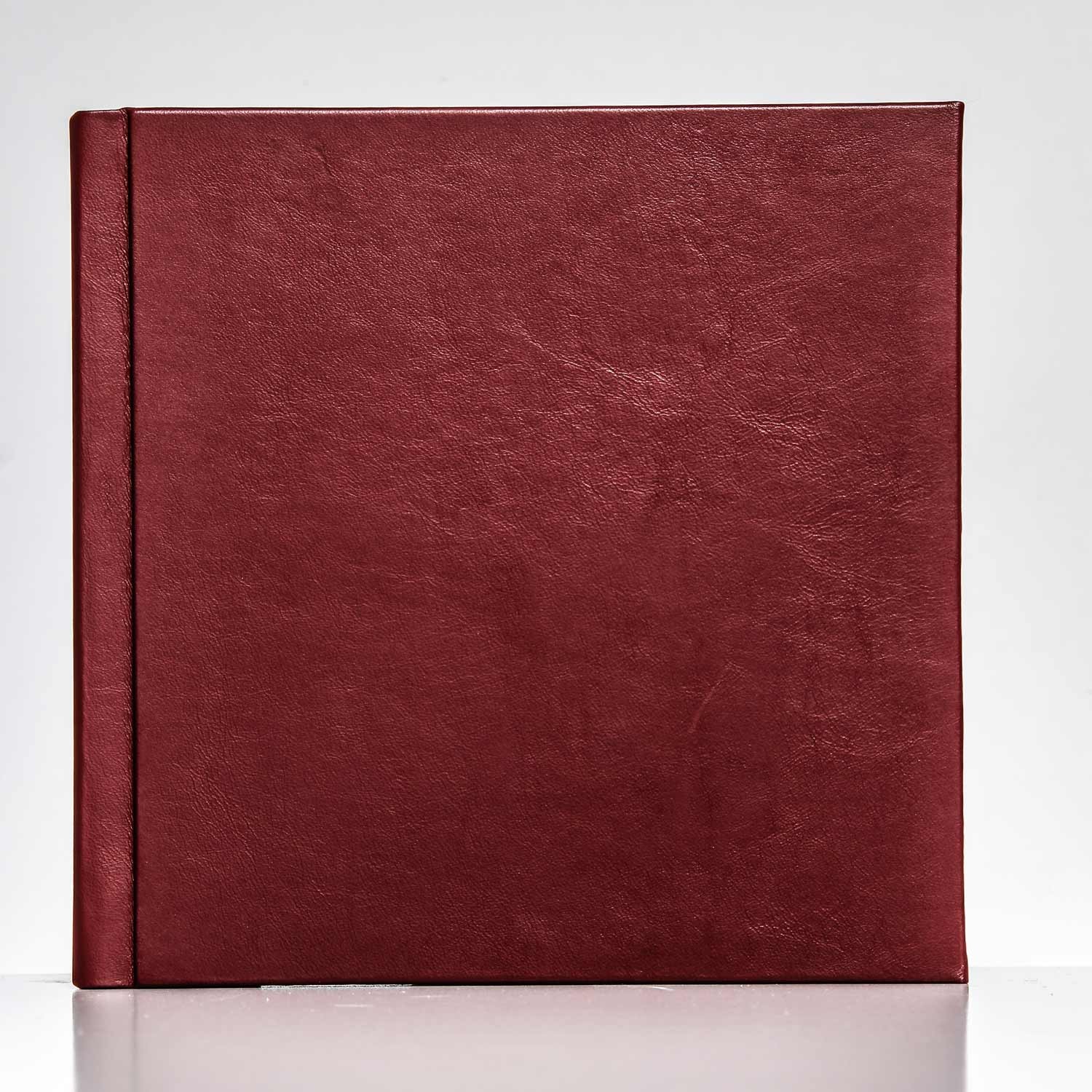 The album shown has a cowhide leather cover in Bordeaux and contains 11 double pages on 700g backing material.