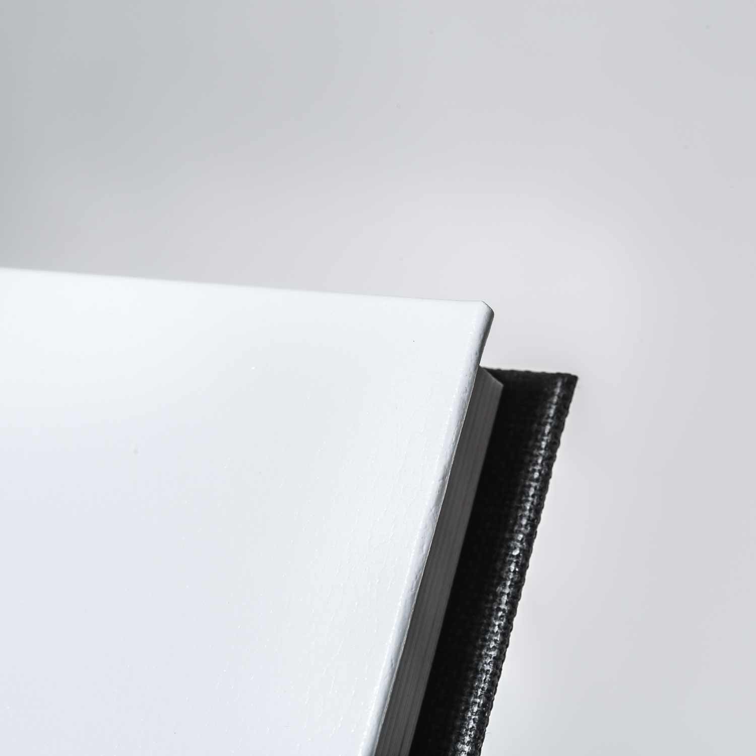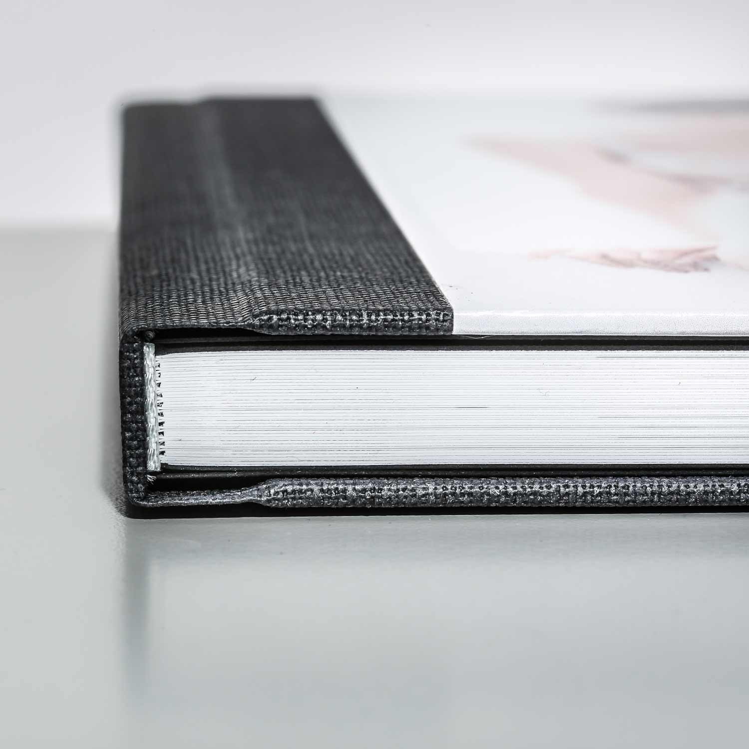 For this effect we print your image on hard-wearing calendered paper with a textured leather-look surface. One suggestion at this point: please ensure the edges, that is, the turn-over, of your images are light in colour, since pigmentation can fade when tensioning the material. Albums with a leather-look cover image may use any of the other cover materials for their backs. And please remember to allow sufficient »padding« around your images, since we need a little extra material to process and fold the edges!