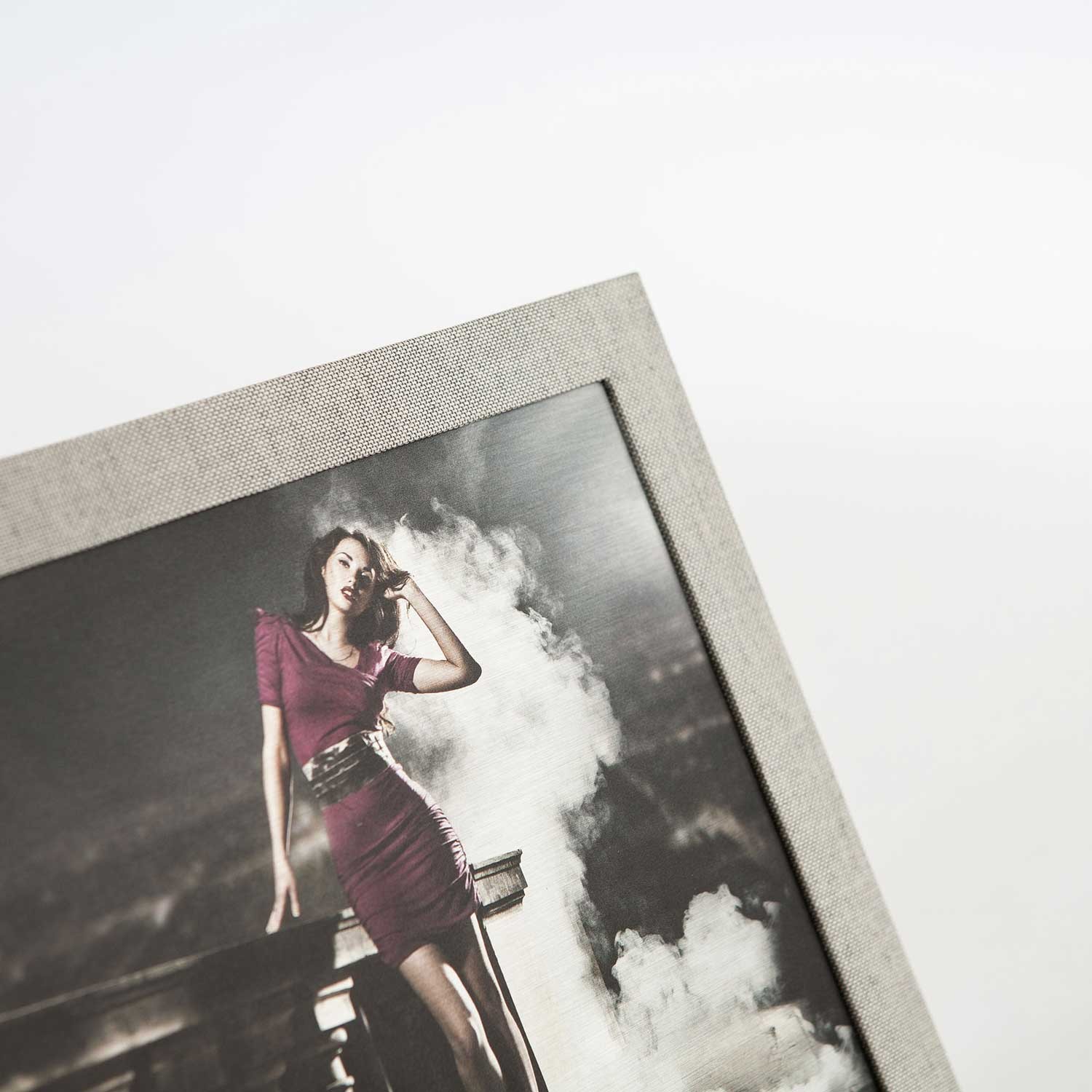 Optez pour une couverture en aluminium et en acrylique pour un petit quelque chose en plus. L’aluminium apporte une finition impeccable tandis que l’acrylique apporte de la profondeur et de la brillance à votre photo de couverture.