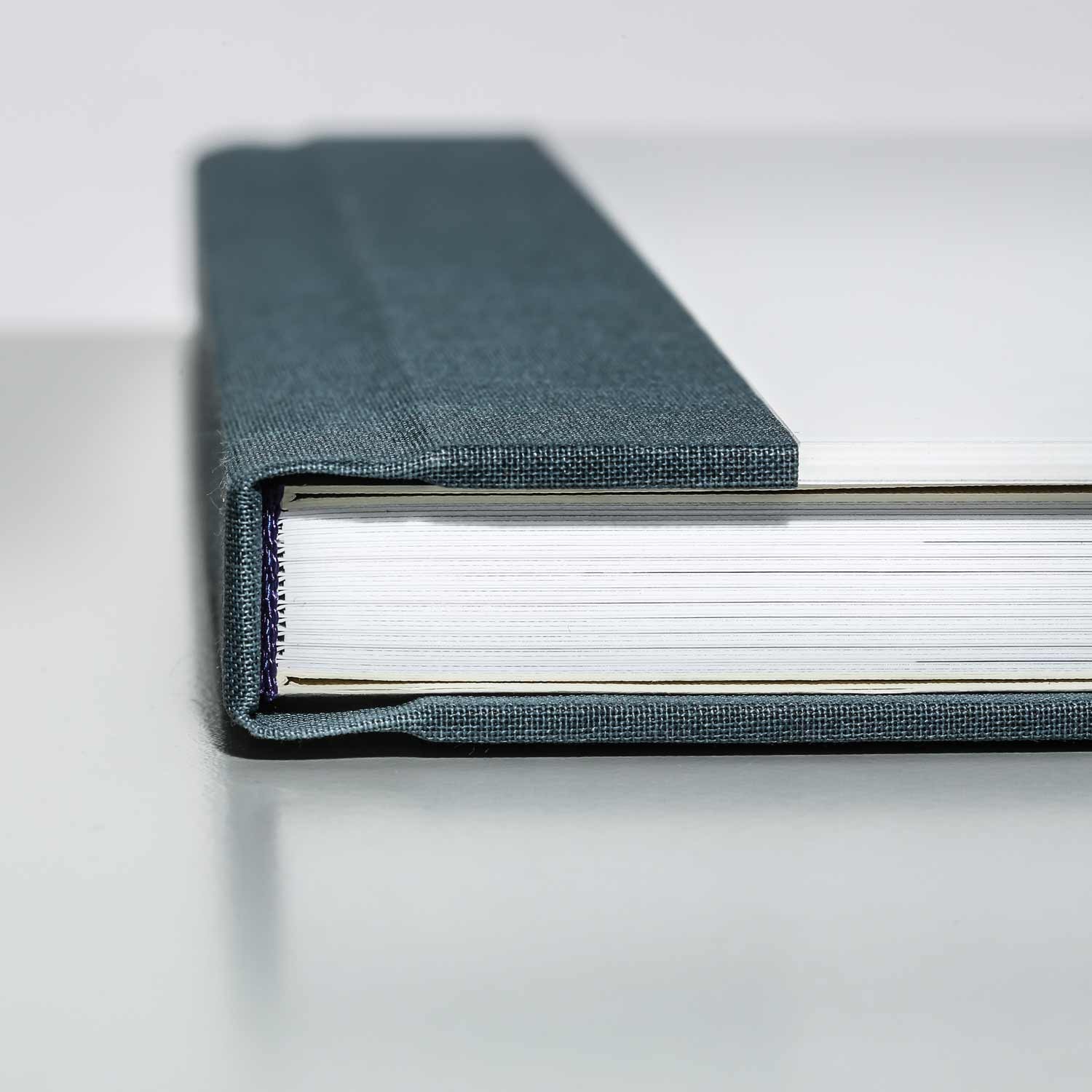 The album shown has a matt linen cover in granite and contains 11 double pages on 700g backing material.